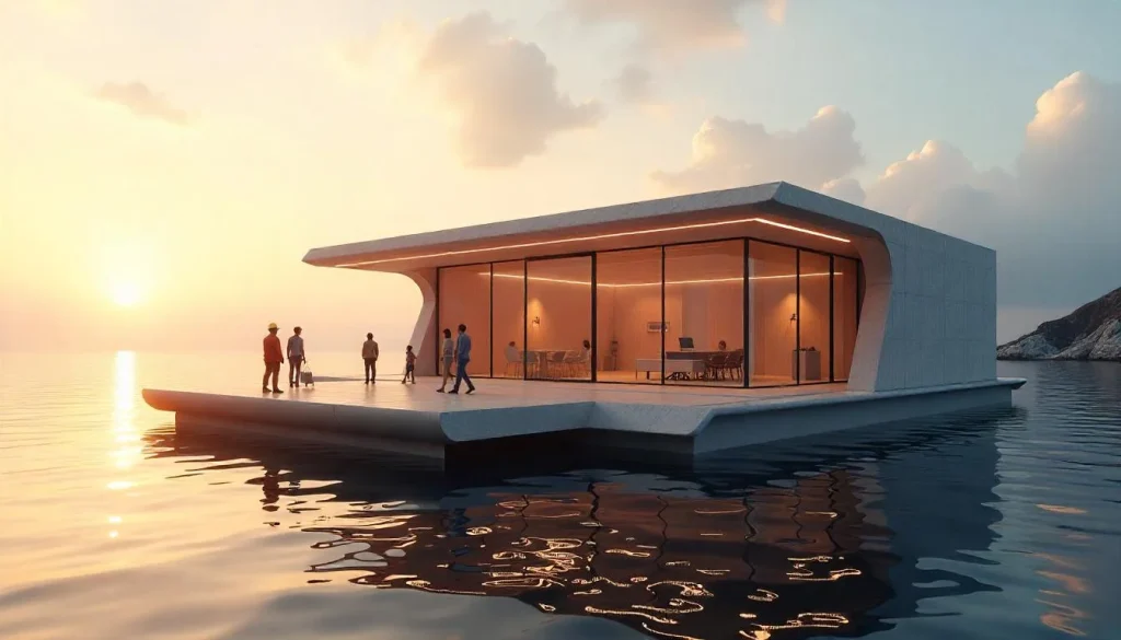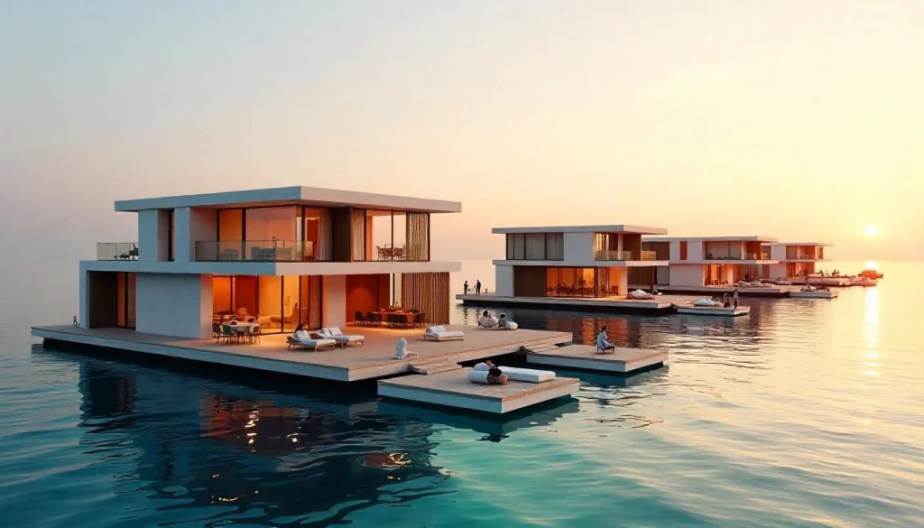 บ้านพักอาศัย โรงแรม รีสอร์ต ร้านอาหาร ศูนย์การค้า และอาคารสำนักงานบนแหล่งน้ำ