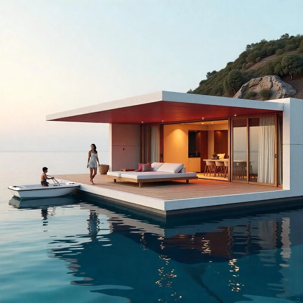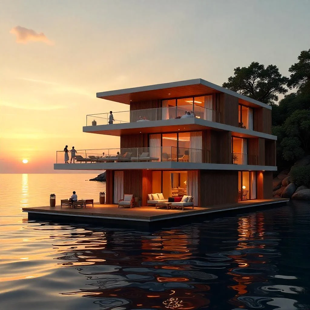 บ้านพักอาศัย โรงแรม รีสอร์ต ร้านอาหาร ศูนย์การค้า และอาคารสำนักงานบนแหล่งน้ำ